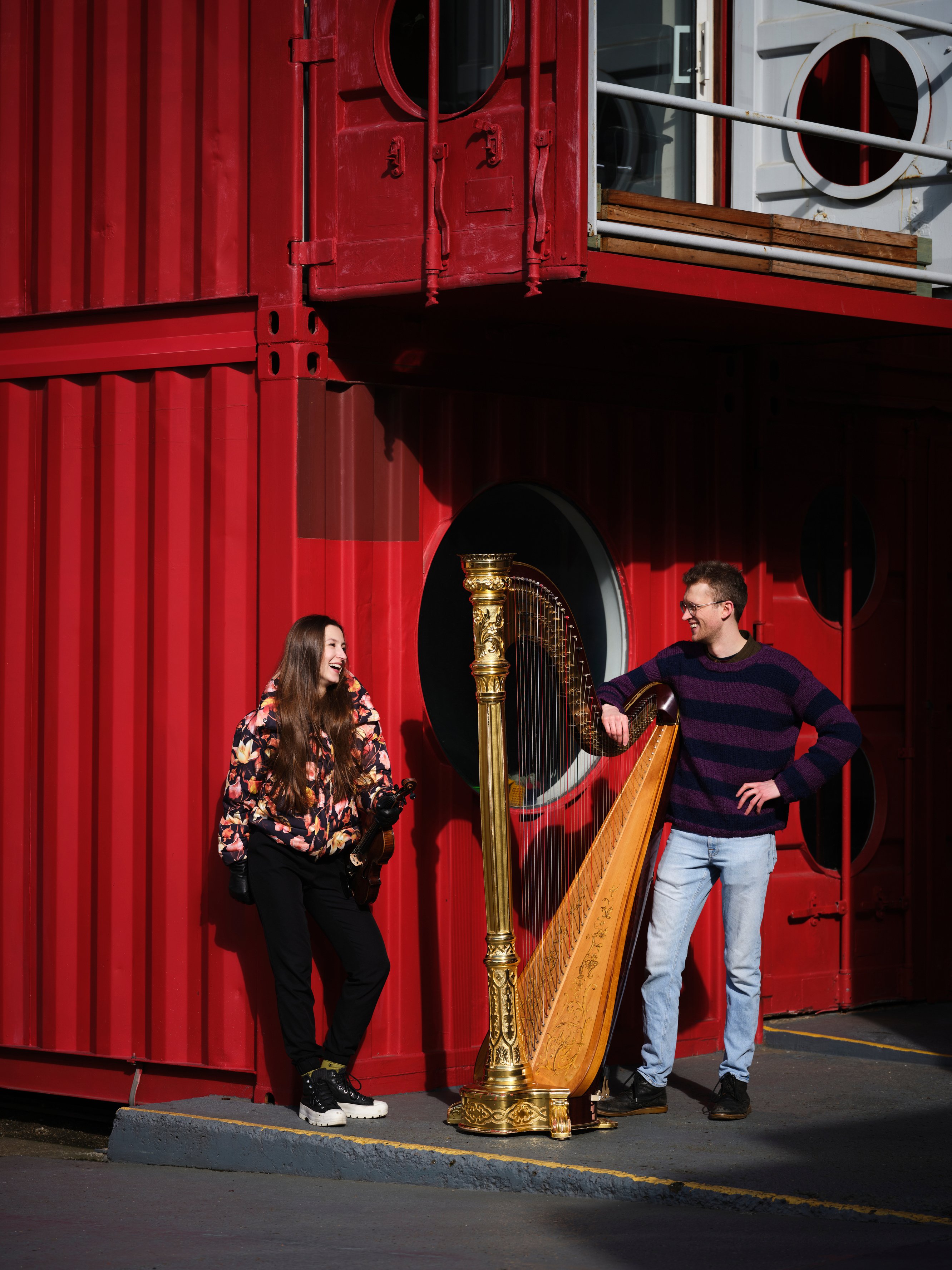 The genesis of their projects is usually an outlandish idea from Gabriela (“can you play Tzigane on the harp?”), followed by a short period of complaining and then begrudging acceptance from Oliver. They enjoy sharing their music in the concert hall, in smaller more intimate venues, and in schools and outreach projects.